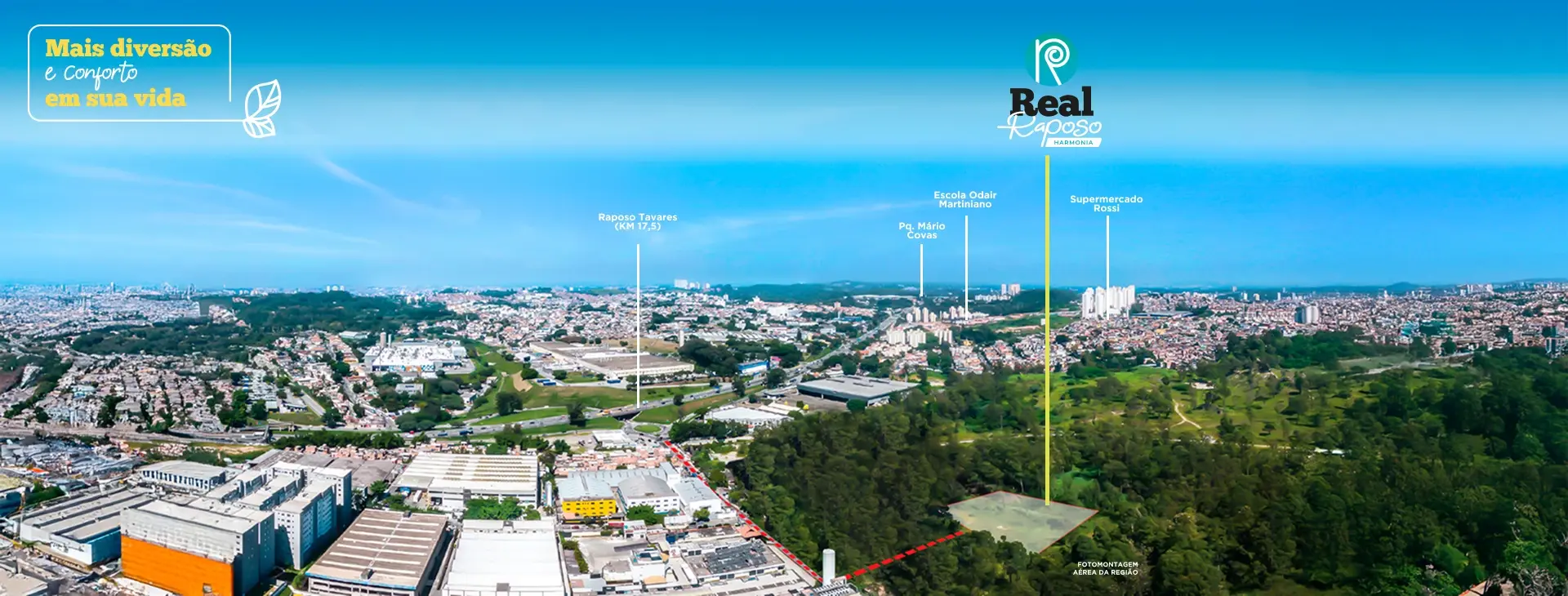 Perto de tudo o que facilita sua rotina, o Real Raposo Harmonia está em uma região completa, com fácil acesso às principais vias da Zona Oeste e ampla infraestrutura de comércio, lazer e serviços.