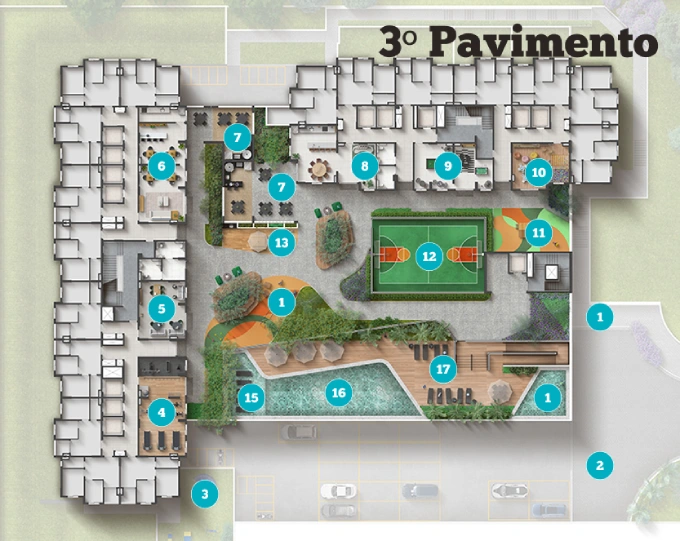 Espaços planejados para diversão, descanso e convivência.