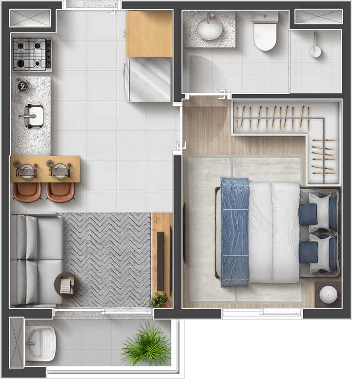 Ambiente planejado para aproveitar cada metro com inteligência e conforto. Planta funcional que valoriza a integração e o bem-estar no dia a dia.